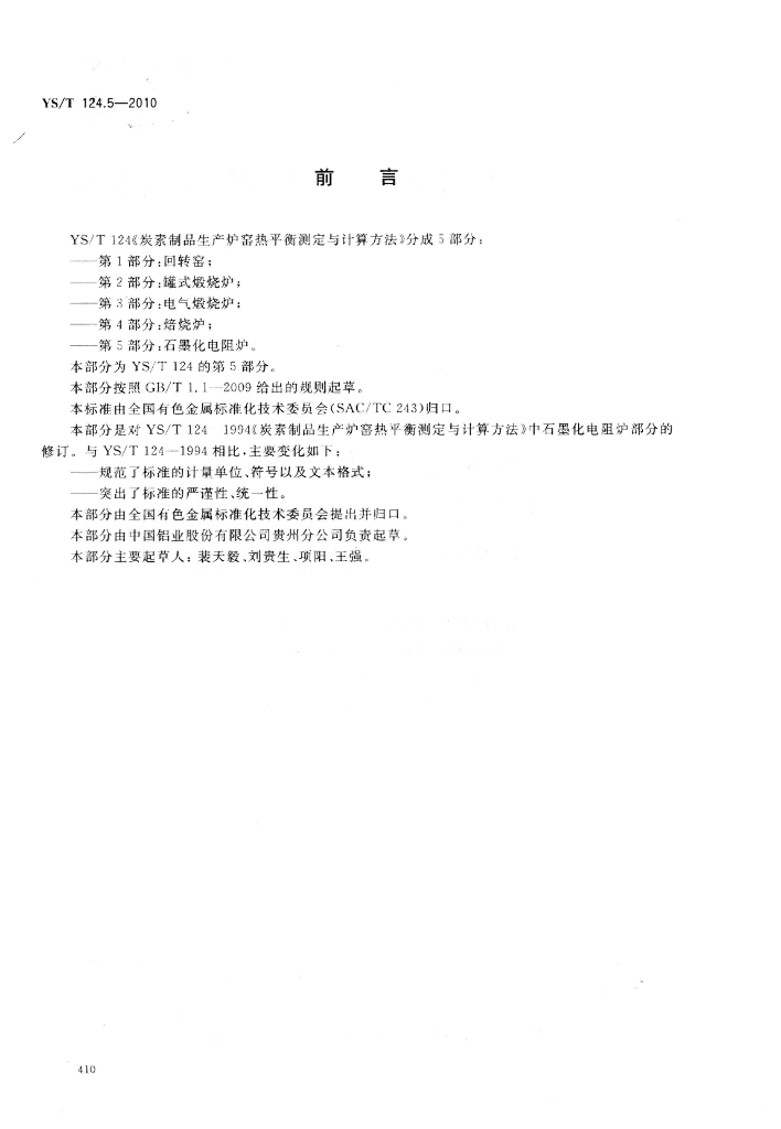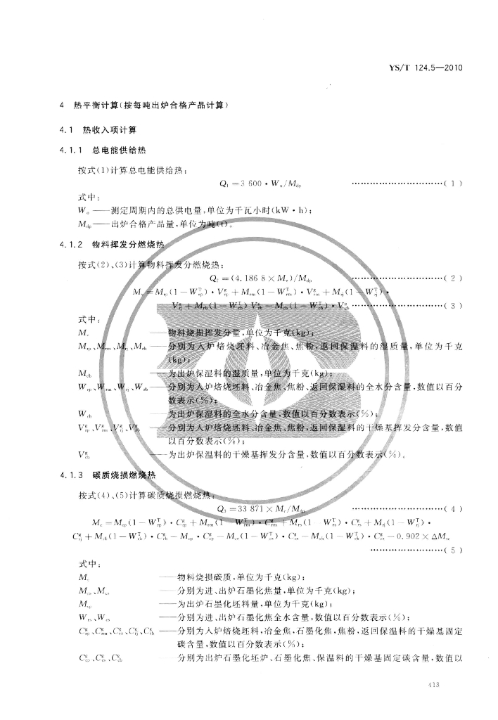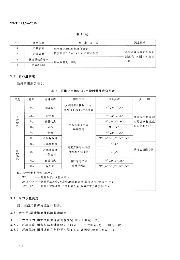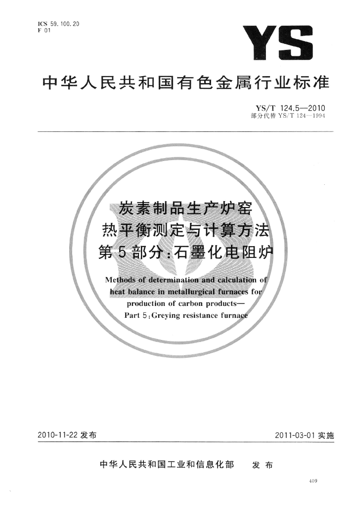 YS/T 124.5-2010 炭素制品生产炉窑 热平衡测定与计算方法 第5部分:石墨化电阻炉
