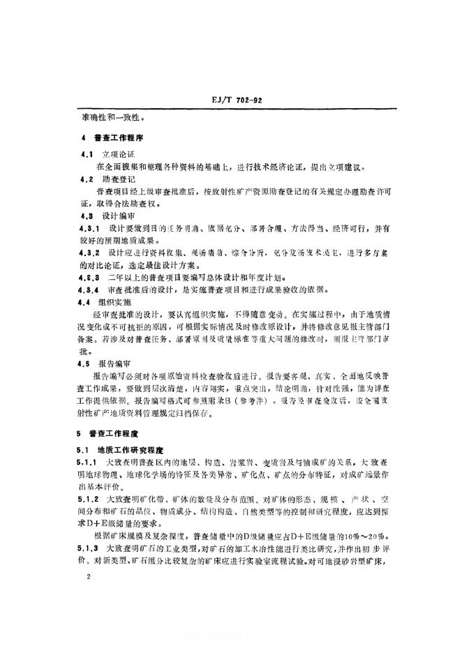 EJ/T 702-1992 铀矿地质普查规范