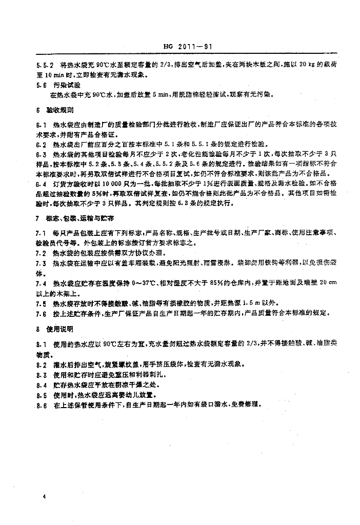 HG 2011-1991 橡胶热水袋