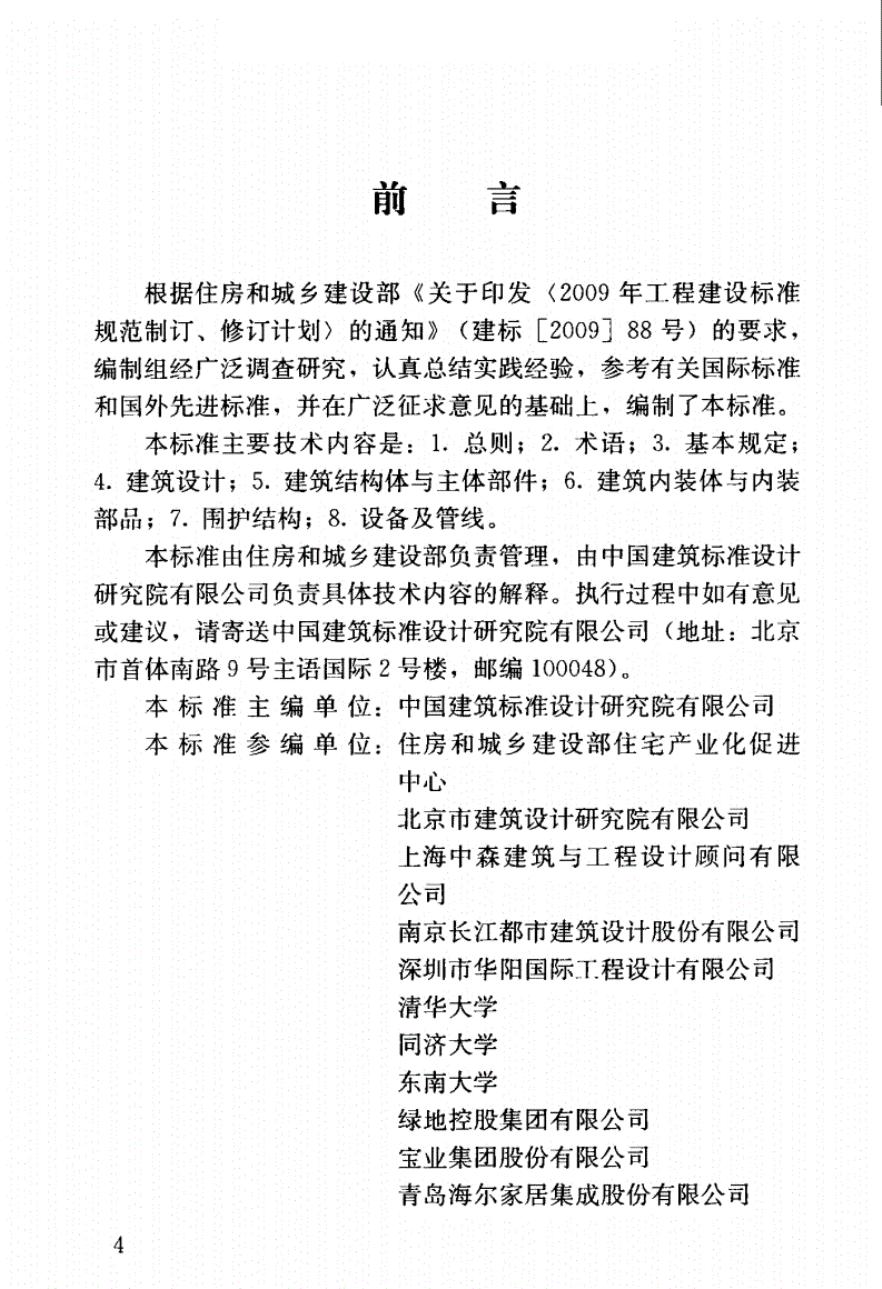 中国建筑标准设计研究院有限公司、住房和城乡建设部住宅产业化促进中心、北京市建筑设计研究院有限公司、上海中森建筑与工程设计顾问有限公司、南京长江都市建筑设计股份有限公司、深圳市华阳国际工程设计有限公司、清华大学、同济大学、东南大学、绿地控股集团有限公司、宝业集团股份有限公司、青岛海尔家居集成股份有限公司、苏州科逸住宅设备股份有限公司、松下电器(中国)有限公司、山东万斯达建筑科技股份有限公司、宝钢建筑系统集成有限公司