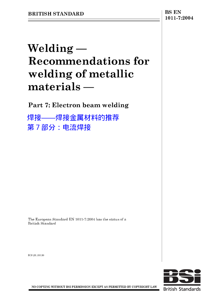 BS EN 1011-7-2004 焊接 焊接金属材料的推荐 第7部分:电流焊接
