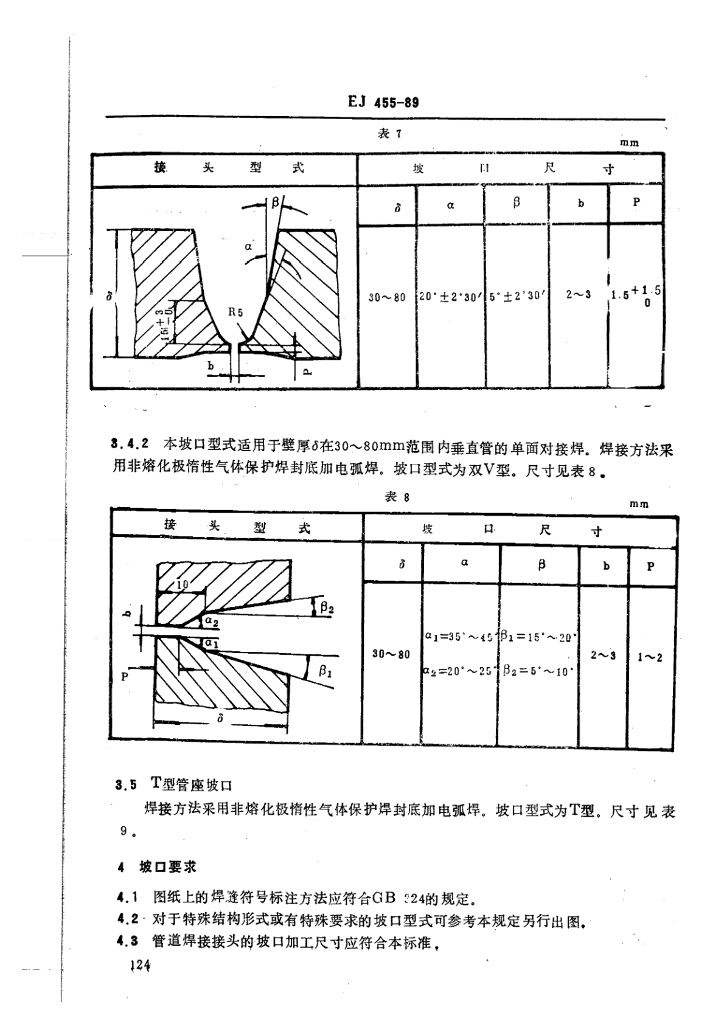 EJ/T 455-1989 三十万千瓦压水堆核电厂 不锈钢管道焊接接头型式