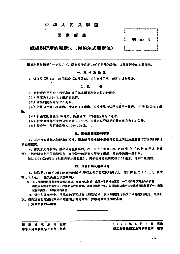 GB/T 1538-1979 纸板耐折度的测定法 (肖伯尔式测定仪)