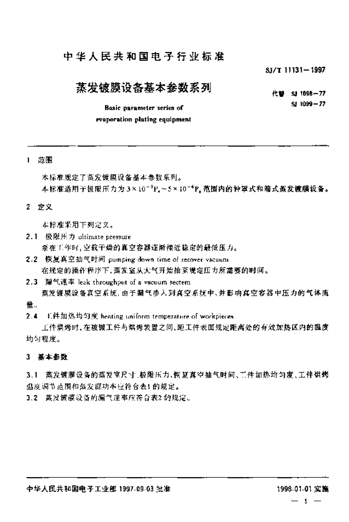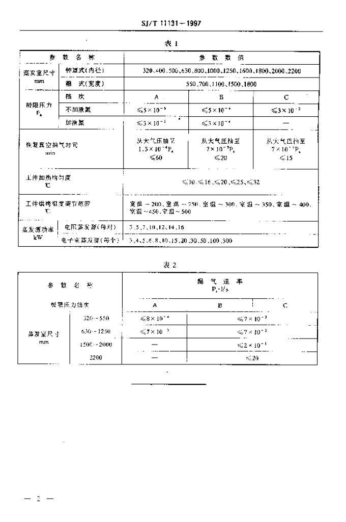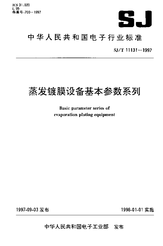 SJ/T 11131-1997 蒸发镀膜设备基本参数系列