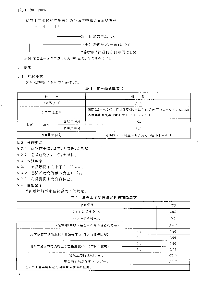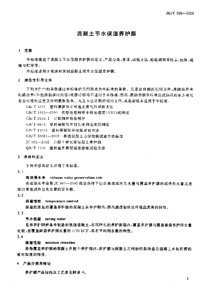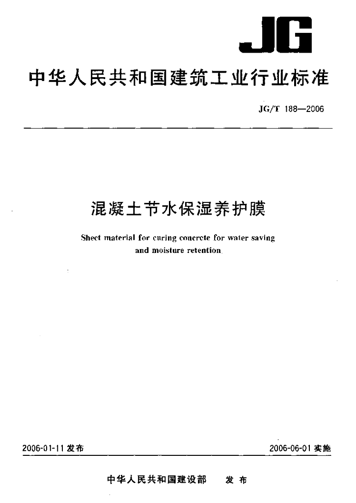 JG/T 188-2006 混凝土节水保湿养护膜