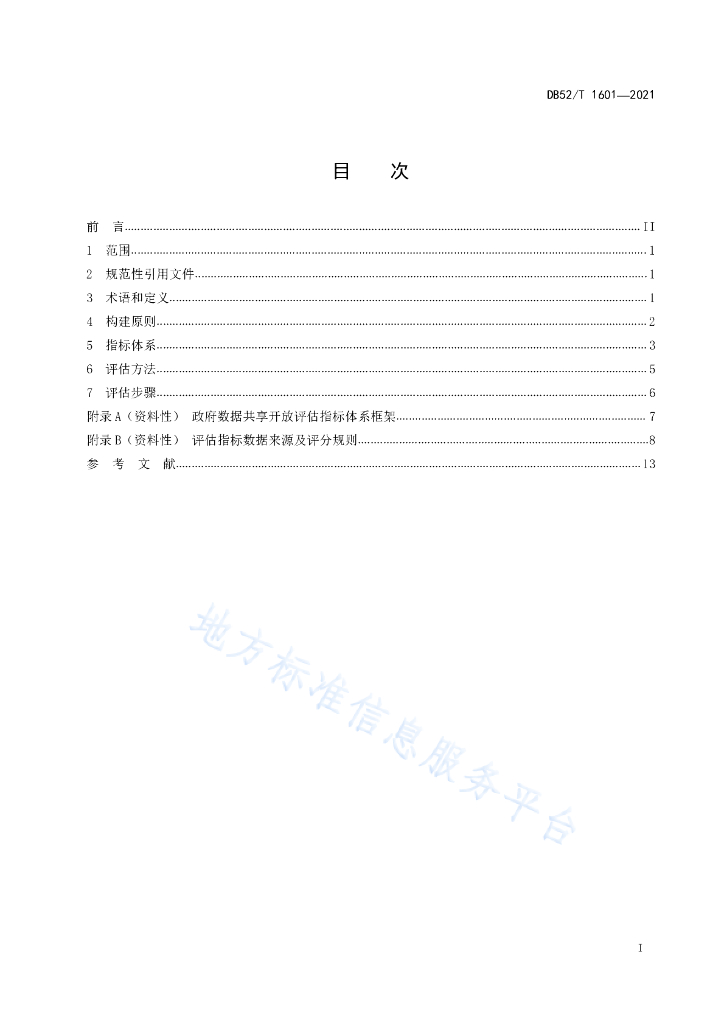 DB52/T 1601-2021 政府数据共享开放评估指标体系