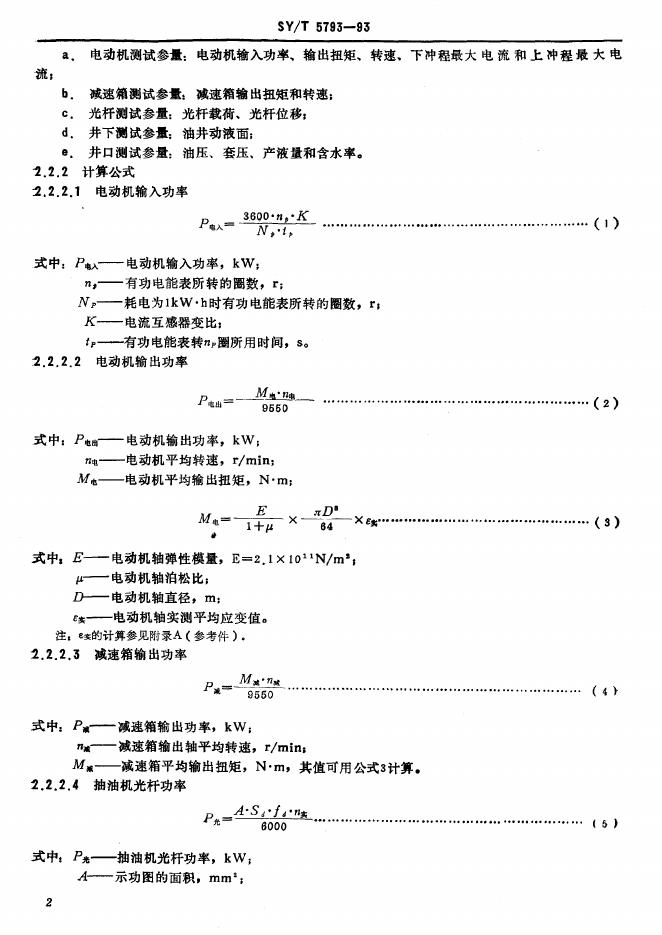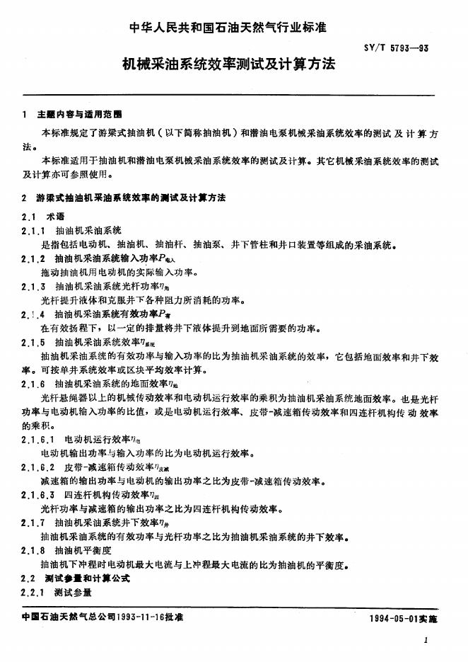 SY/T 5793-1993 机械采油系统效率测试及计算方法