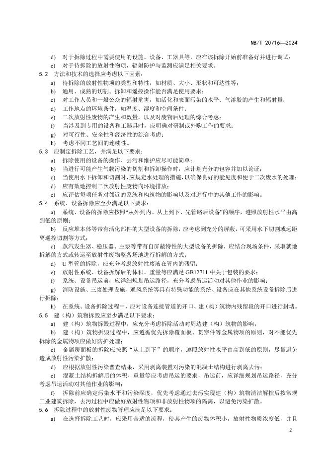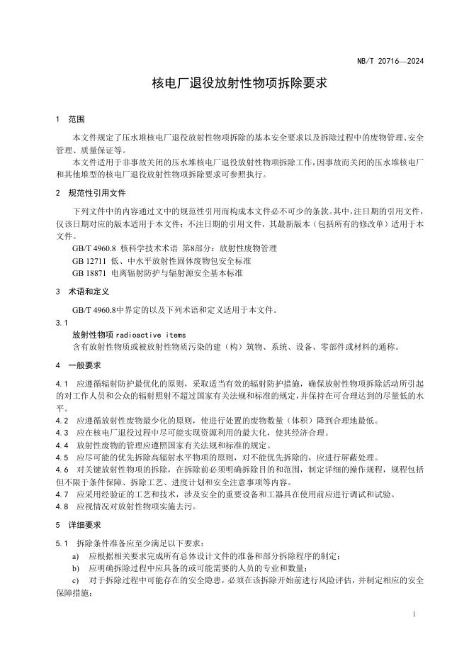 NB/T 20716-2024 核电厂退役放射性物项物拆除要求