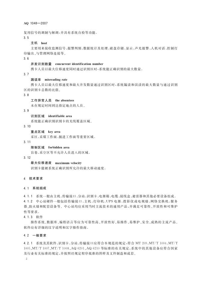 AQ 1048-2007 煤矿井下作业人员管理系统使用与管理规范