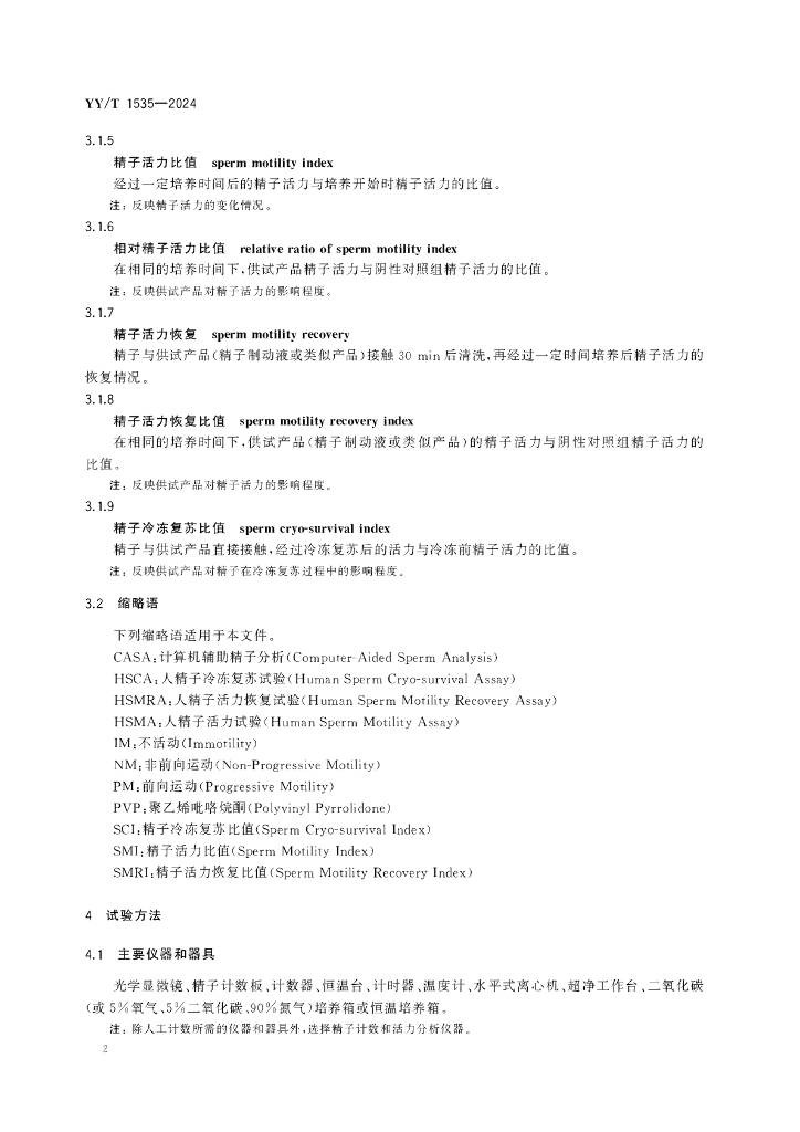 YY/T 1535-2024 人类辅助生殖技术用医疗器械 人精子存活试验