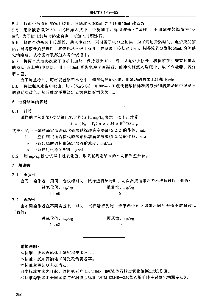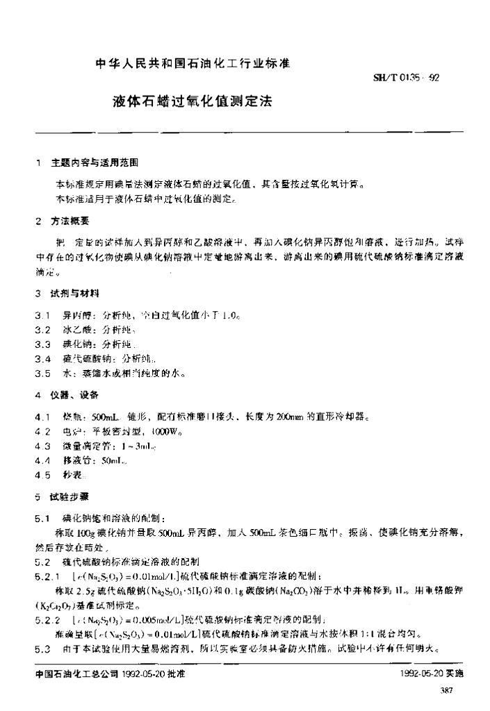 SH/T 0135-1992 液体石蜡过氧化值测定法