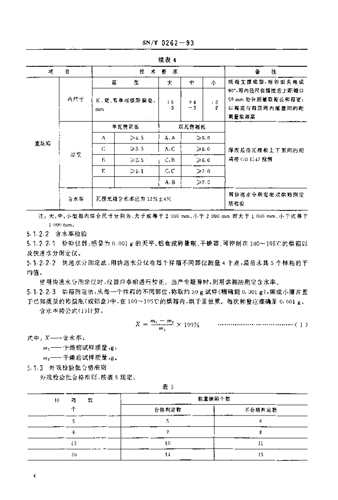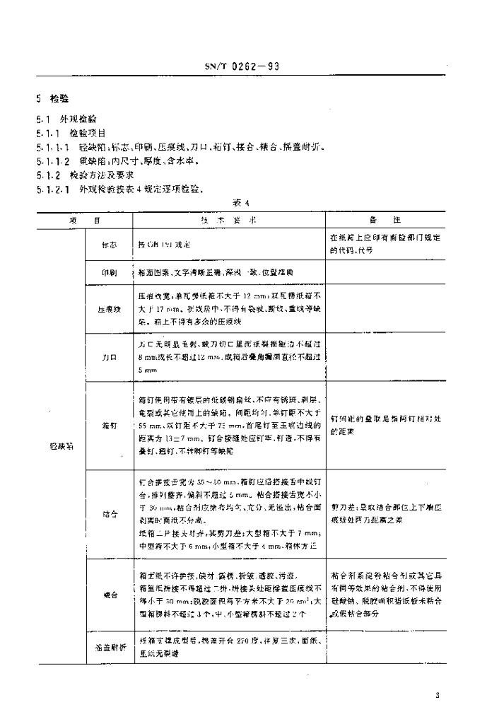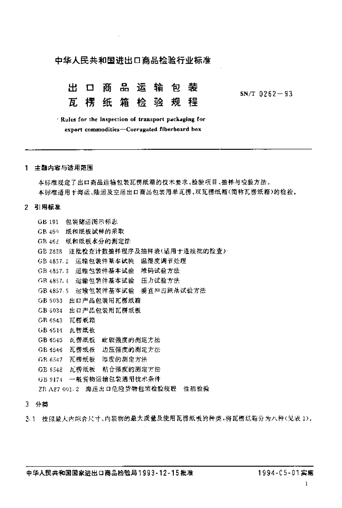 SN/T 0262-1993 出口商品运输包装瓦楞纸箱检验规程