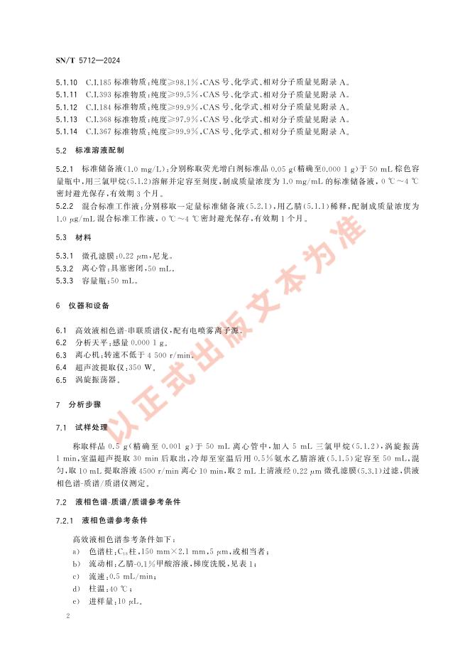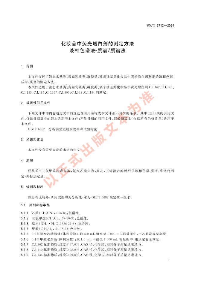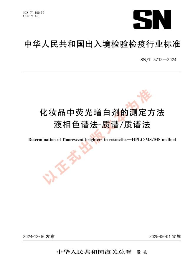 SN/T 5712-2024 化妆品中荧光增白剂的测定方法 液相色谱法-质谱/质谱法