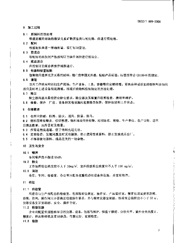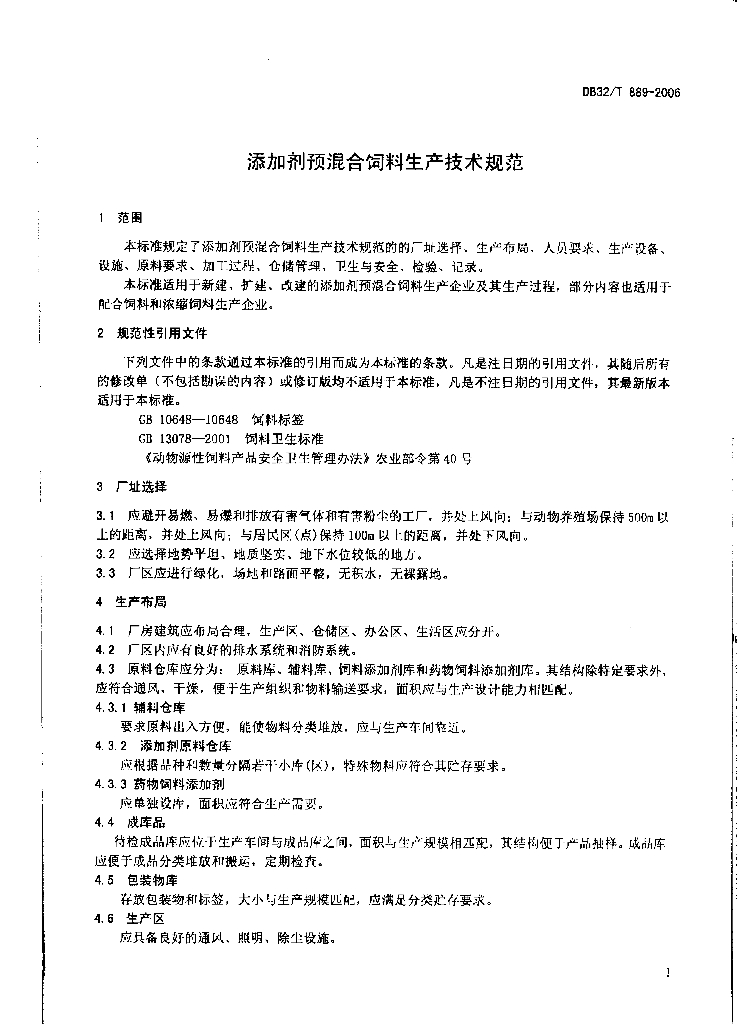 DB32/T 889-2006 添加剂预混合饲料生产技术规程