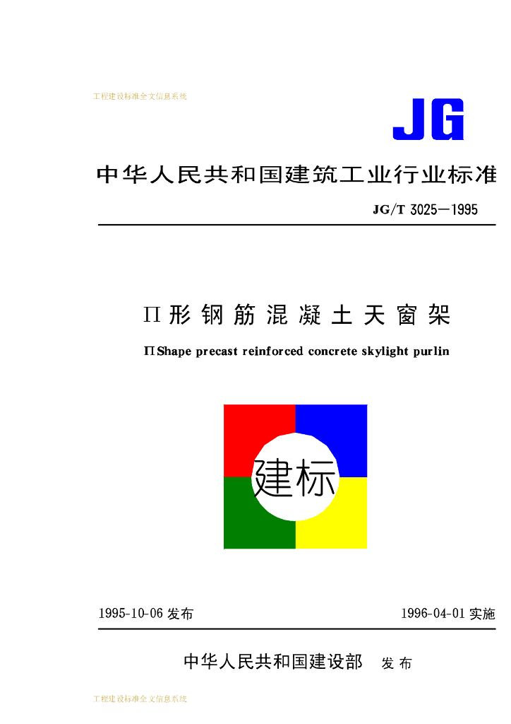 JG/T 3025-1995 Π形钢筋混凝土天窗架