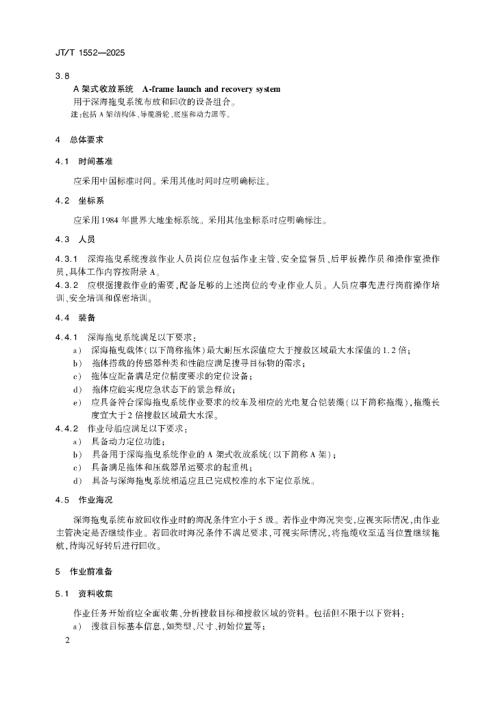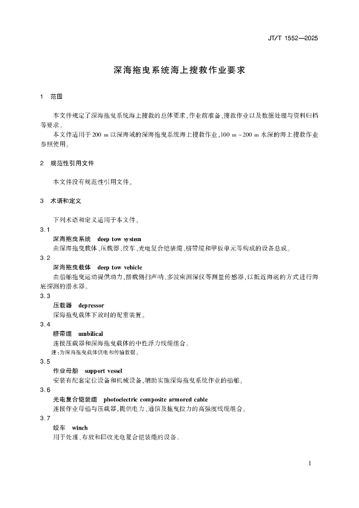 JT/T 1552-2025 深海拖曳系统海上搜救作业要求