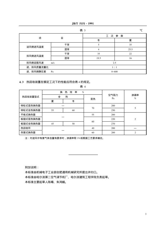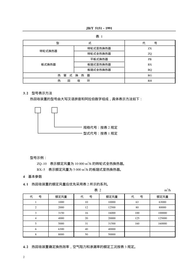 JB/T 5151-1991 空调通风用空气 空气热回收装置 型式与基本参数