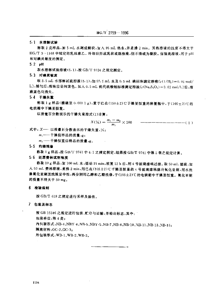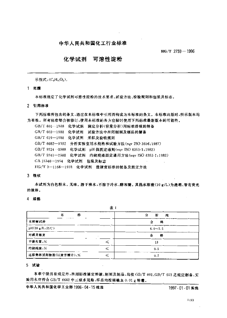HG/T 2759-1996 化学试剂 可溶性淀粉