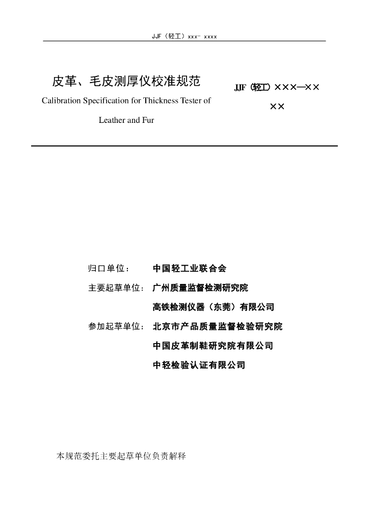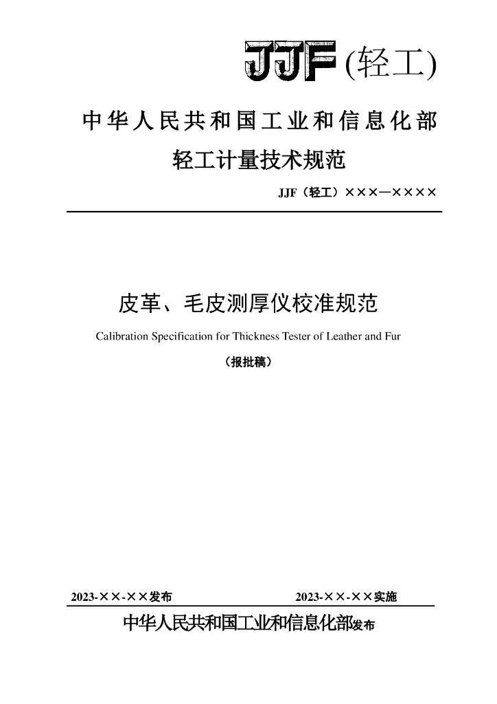 JJF(轻工)181-2023 皮革、毛皮测厚仪校准规范(报批稿)