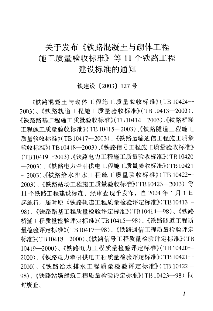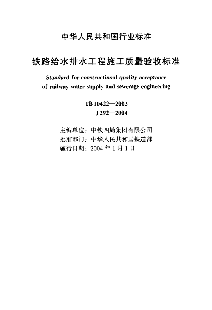TB 10422-2003 铁路给水排水工程施工质量验收标准