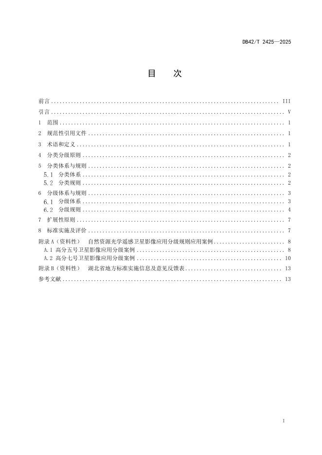 DB42/T 2425-2025 自然资源光学遥感卫星影像应用分类分级规范