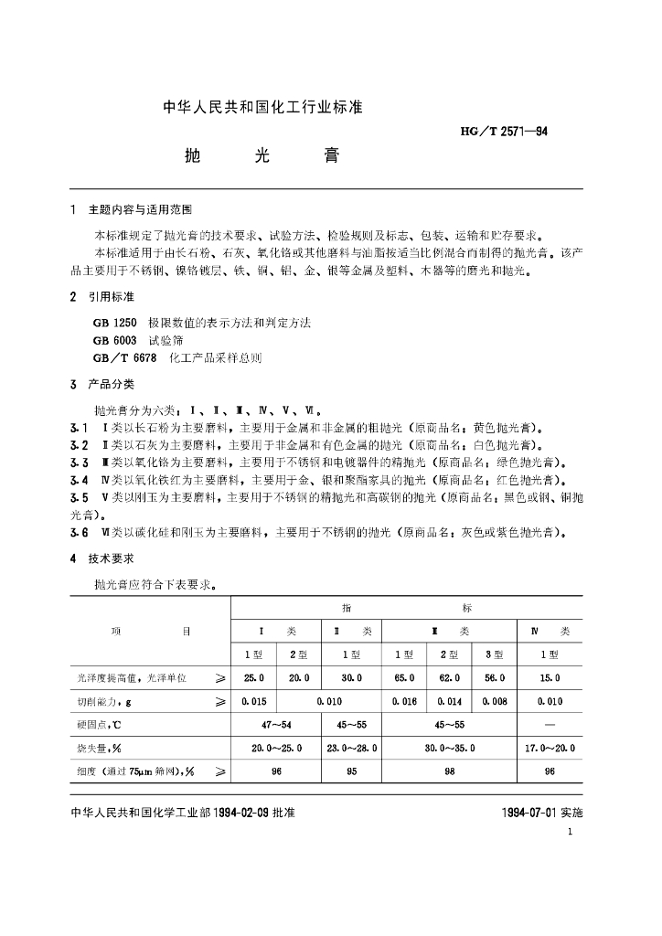 HG/T 2571-1994 抛光膏