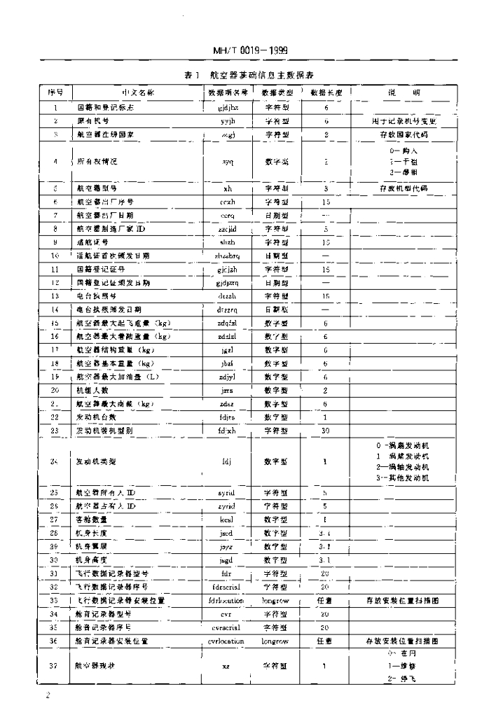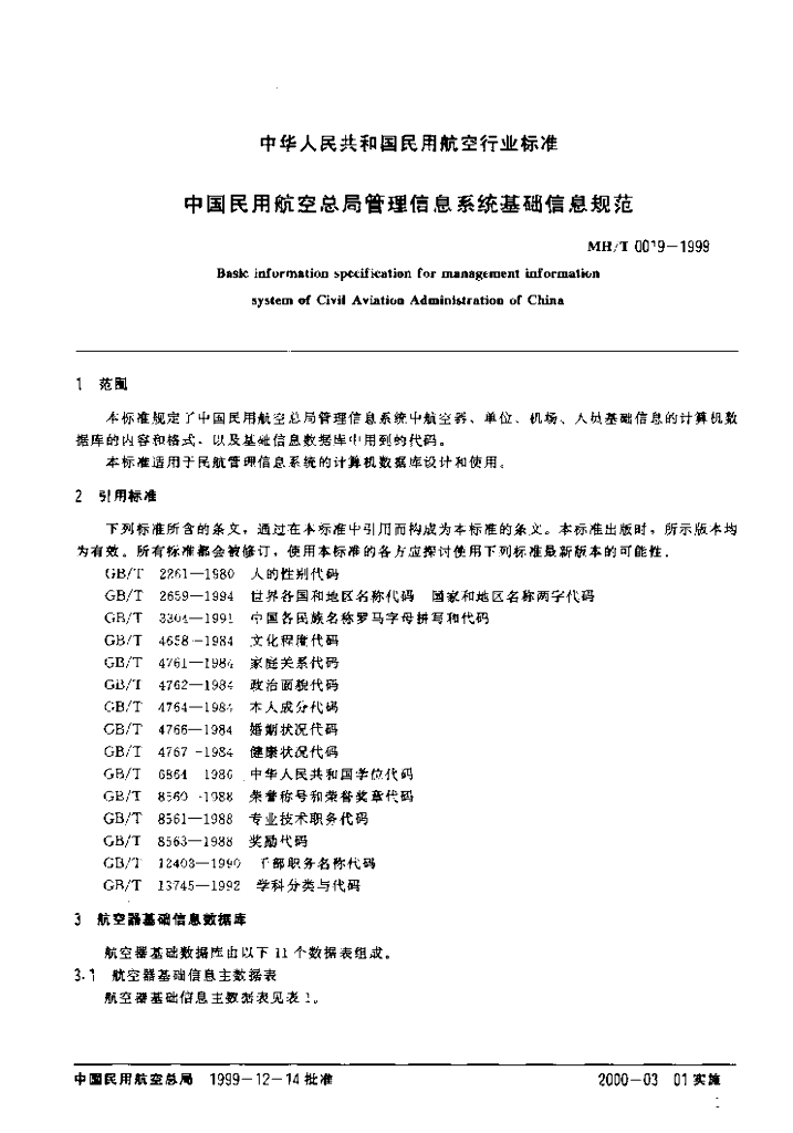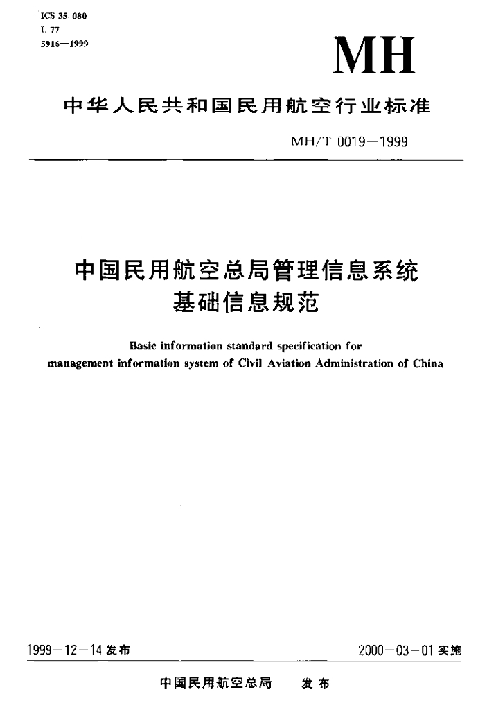 MH/T 0019-1999 中国民用航空总局管理信息系统基础信息规范