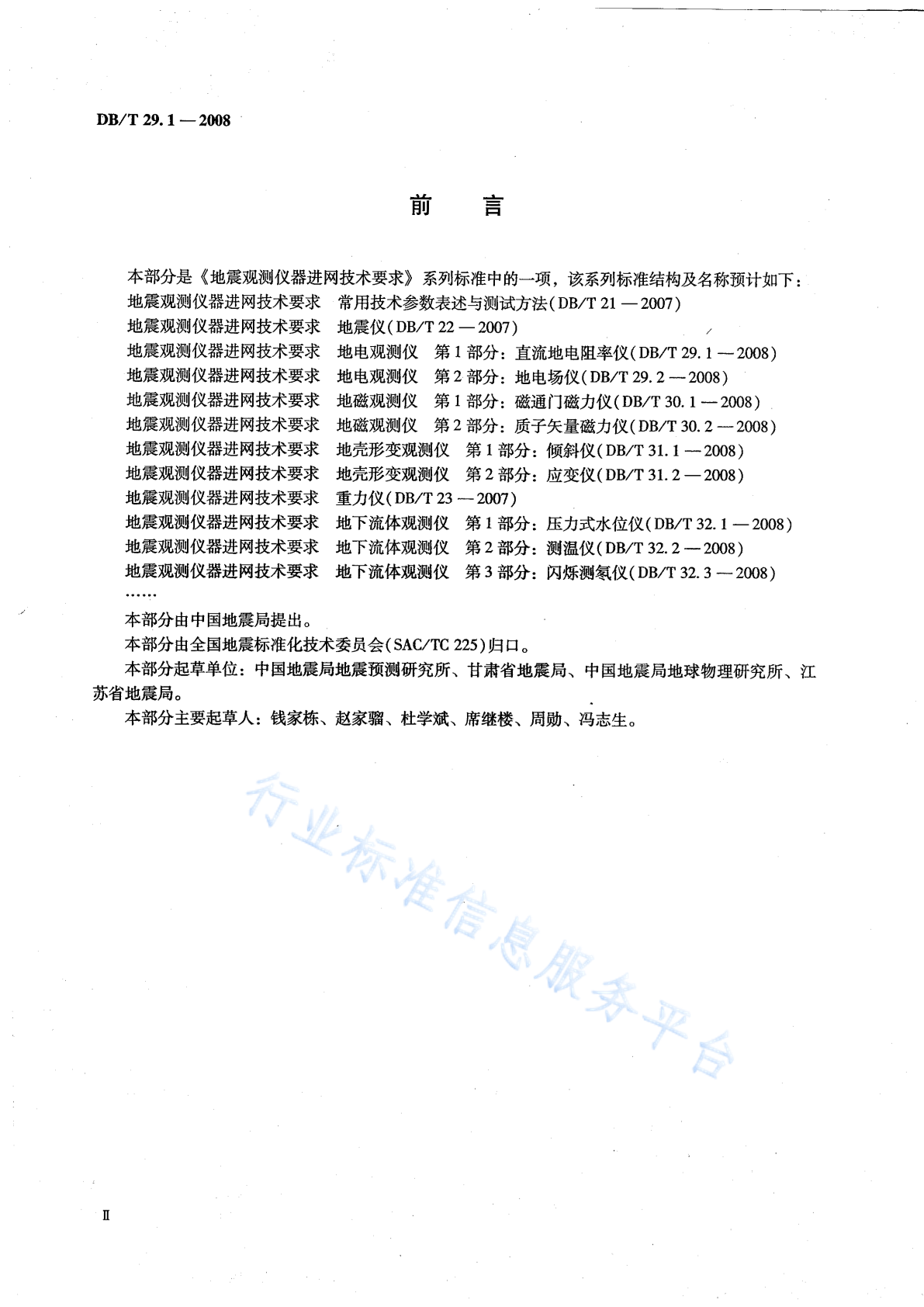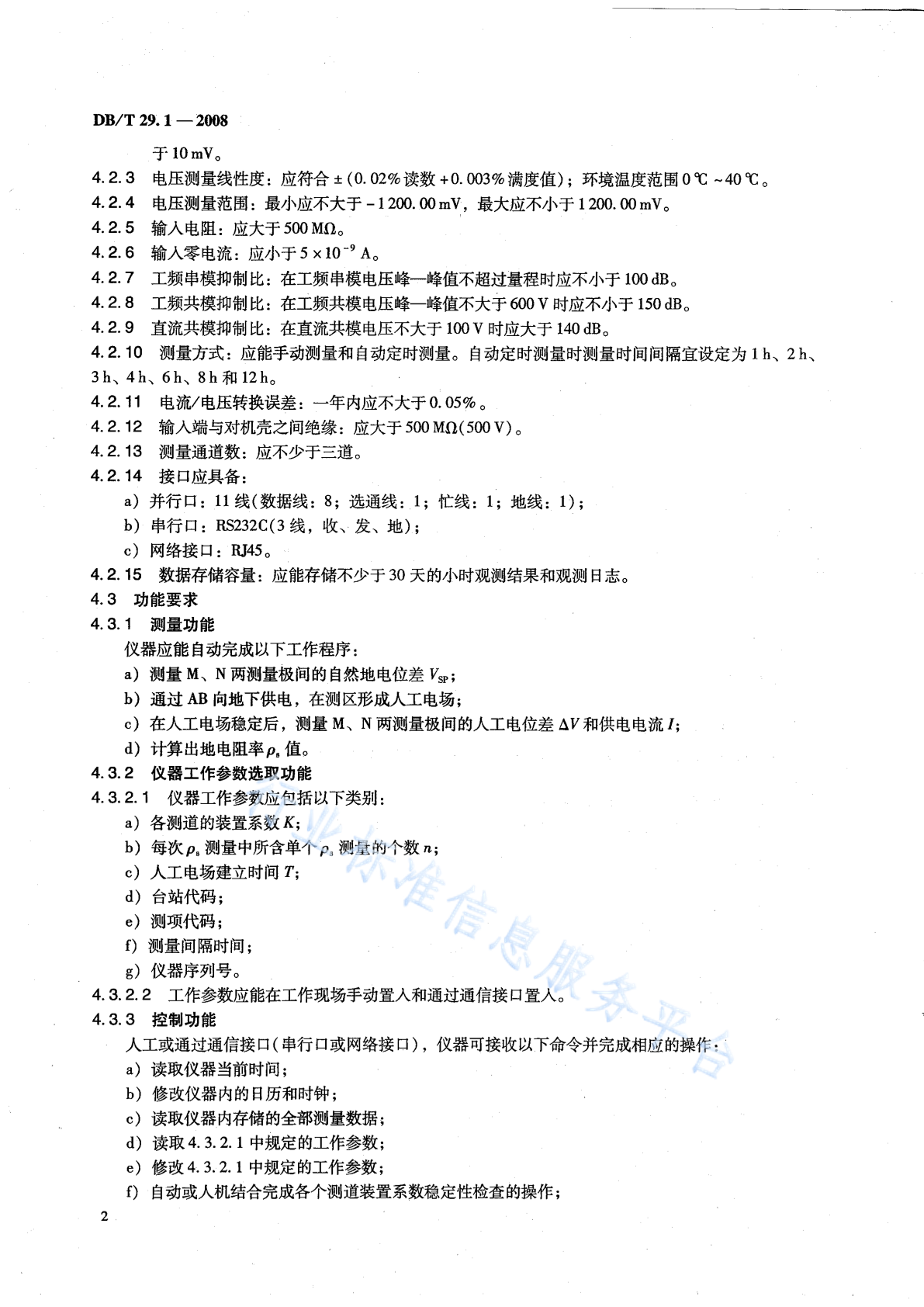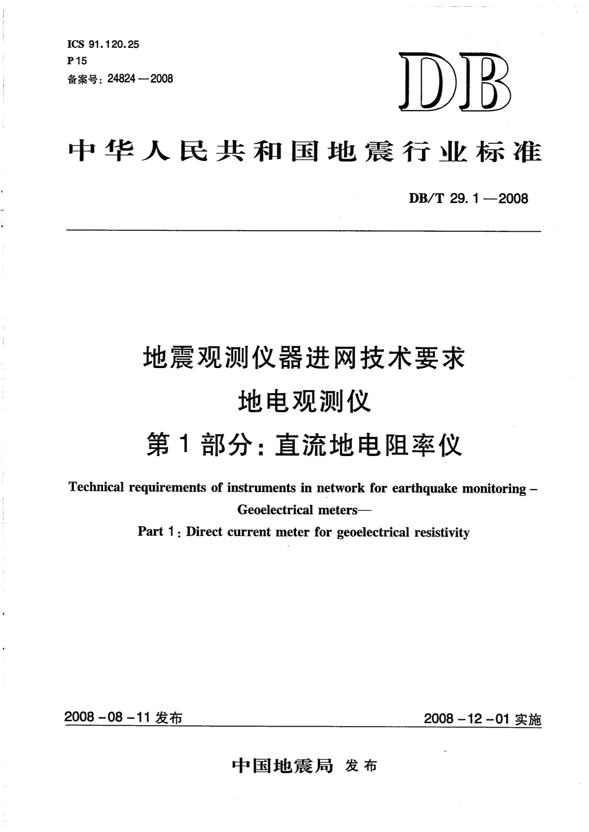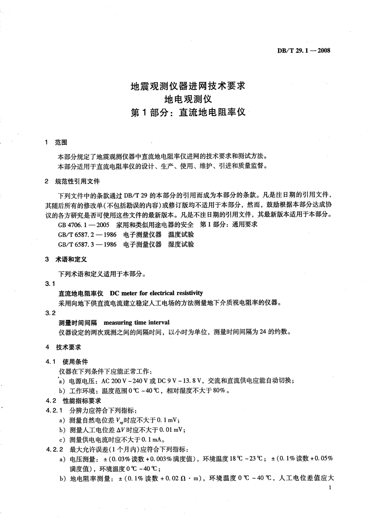 DB/T 29.1-2008 地震观测仪器进网技术要求 地电观测仪 第1部分:直流地电阻率仪