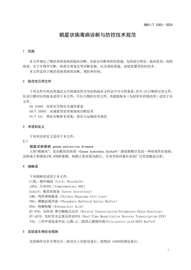 DB51/T 3303-2025 鹅星状病毒病诊断与防控技术规范