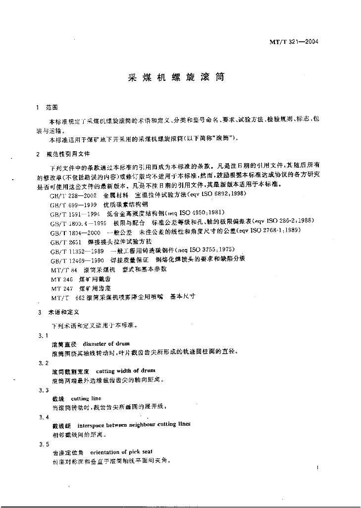 MT/T 321-2004 采煤机螺旋滚筒