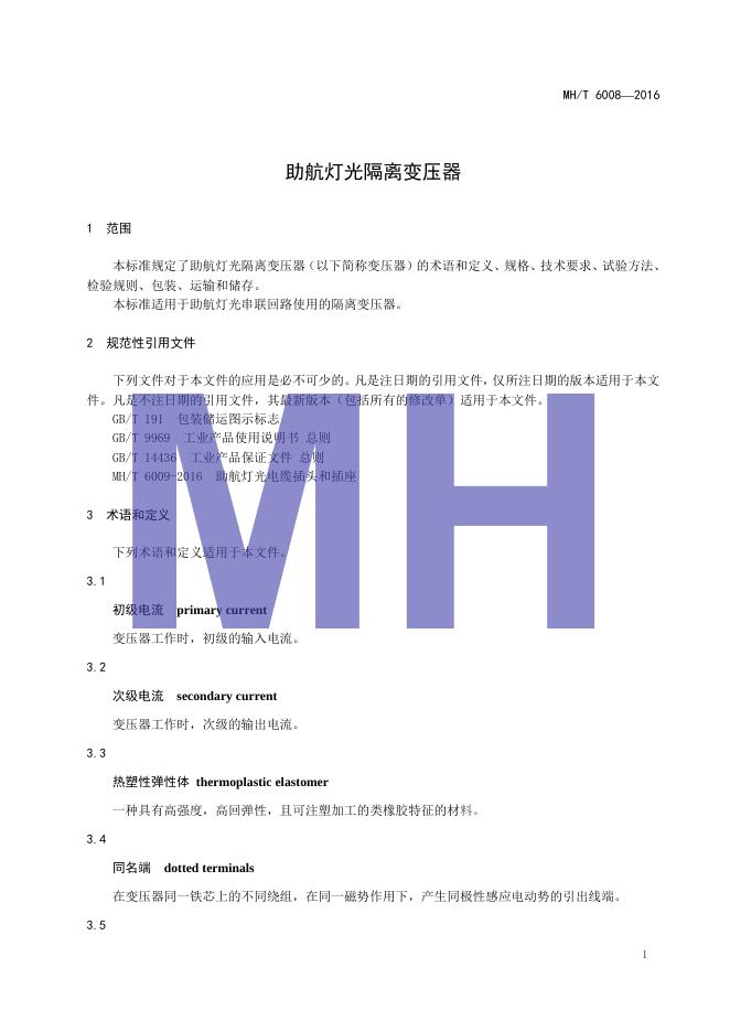 MH/T 6008-2016 助航灯光隔离变压器