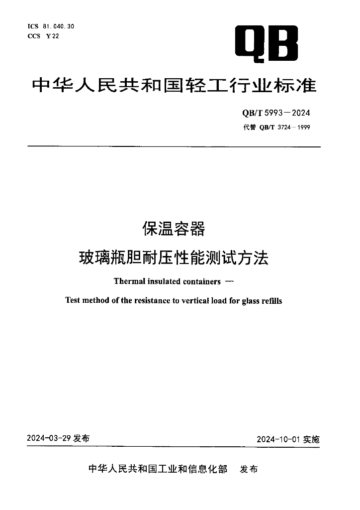 QB/T 5993-2024 保温容器 玻璃瓶胆耐压性能测试方法