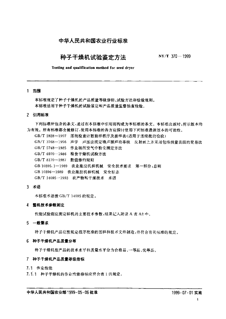 NY/T 370-1999 种子干燥机试验鉴定方法
