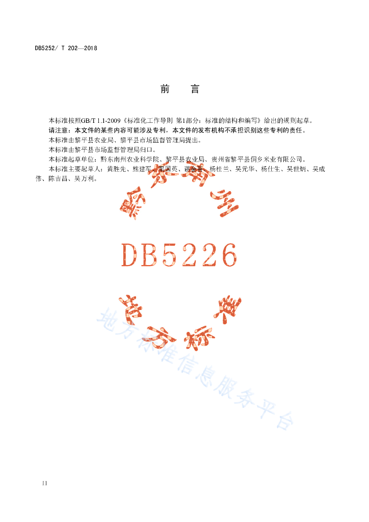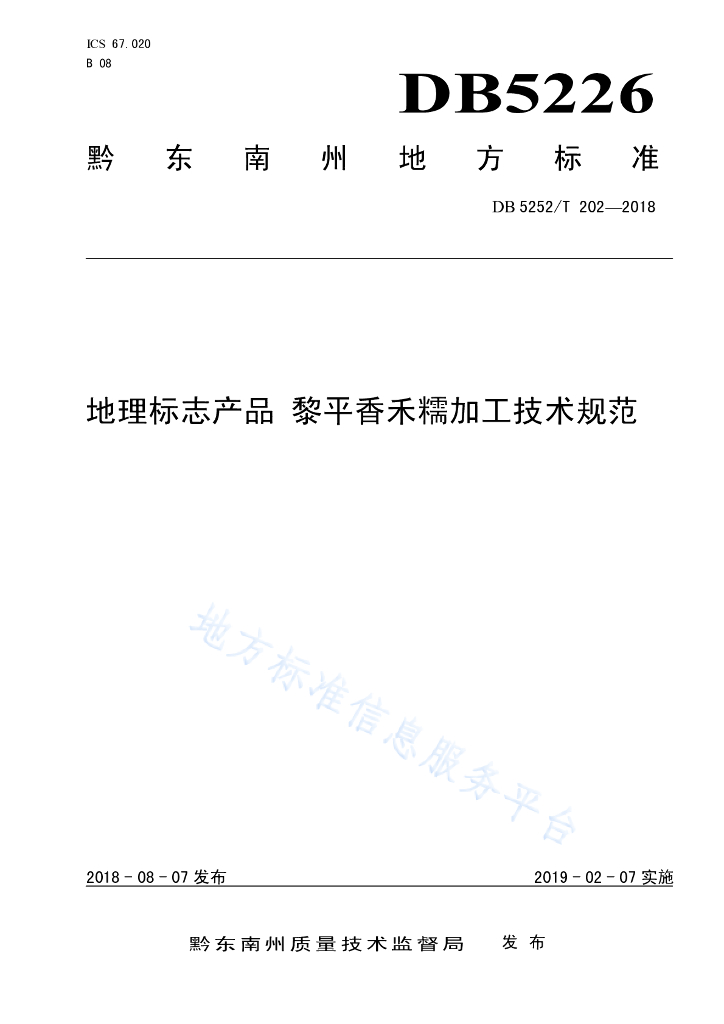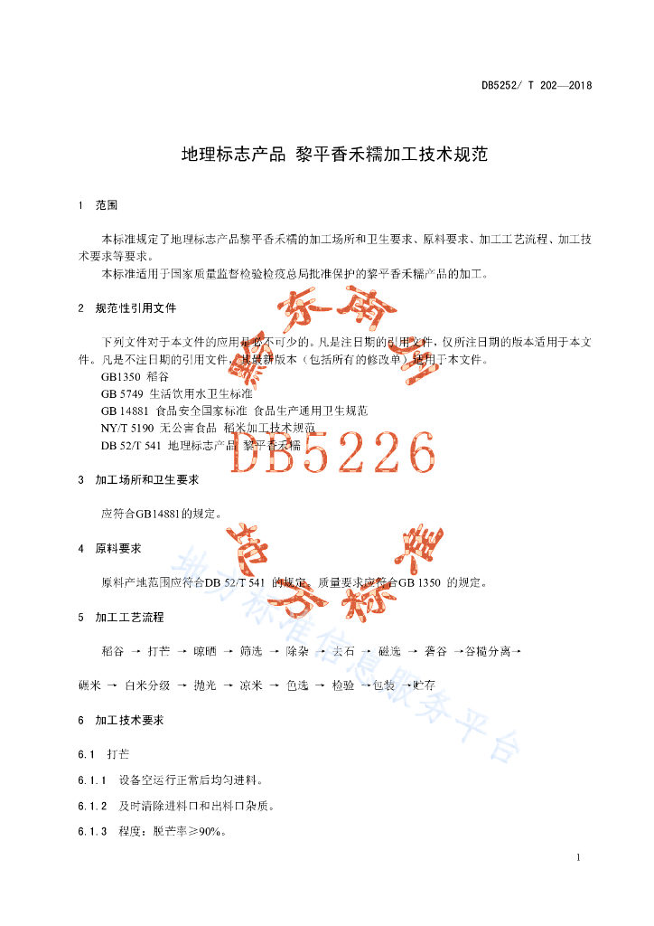 DB5226/T 202-2018 地理标志产品 黎平香禾糯加工技术规范