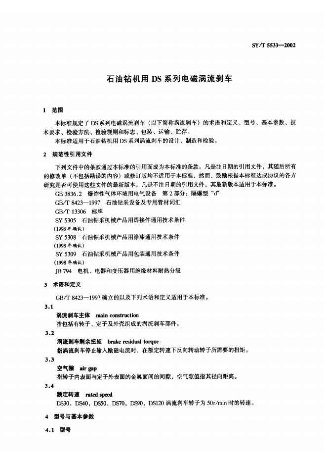 SY/T 5533-1992 DS系列电磁涡流刹车