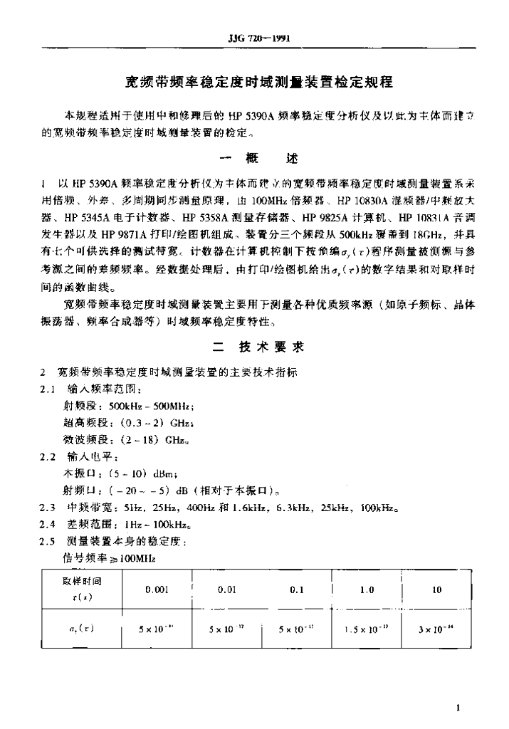 JJG 720-1991 宽频带频率稳定度、时域测量装置检定规程