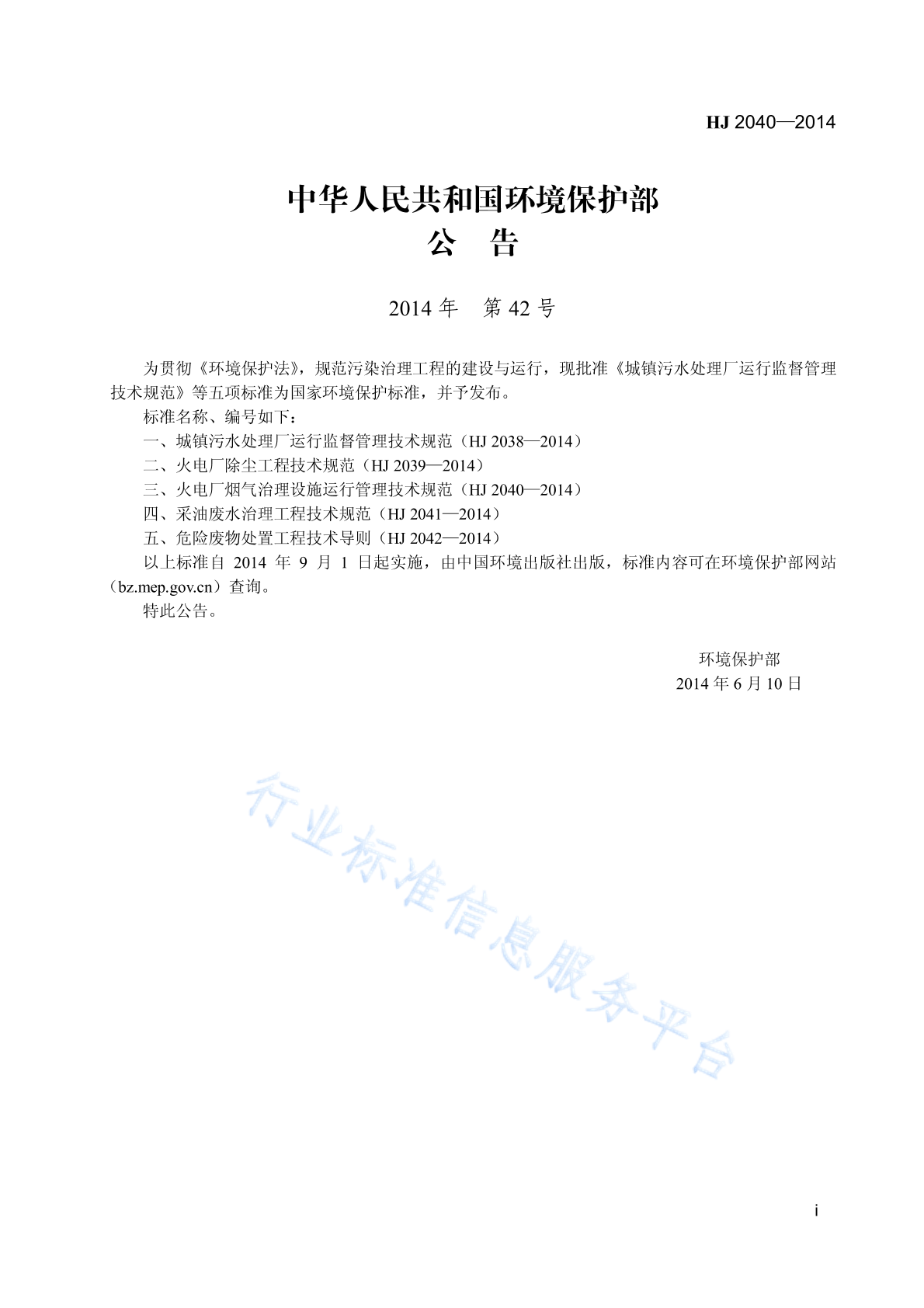 HJ 2040-2014 火电厂烟气治理设施运行管理技术规范