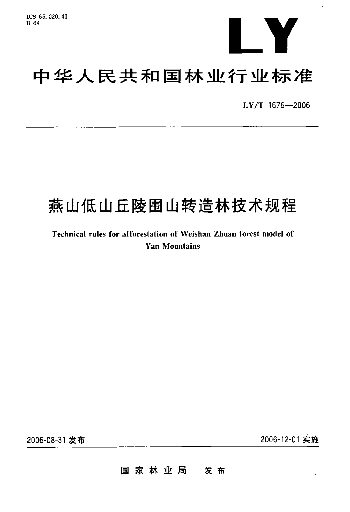 LY/T 1676-2006 燕山低山丘陵围山转造林技术规程