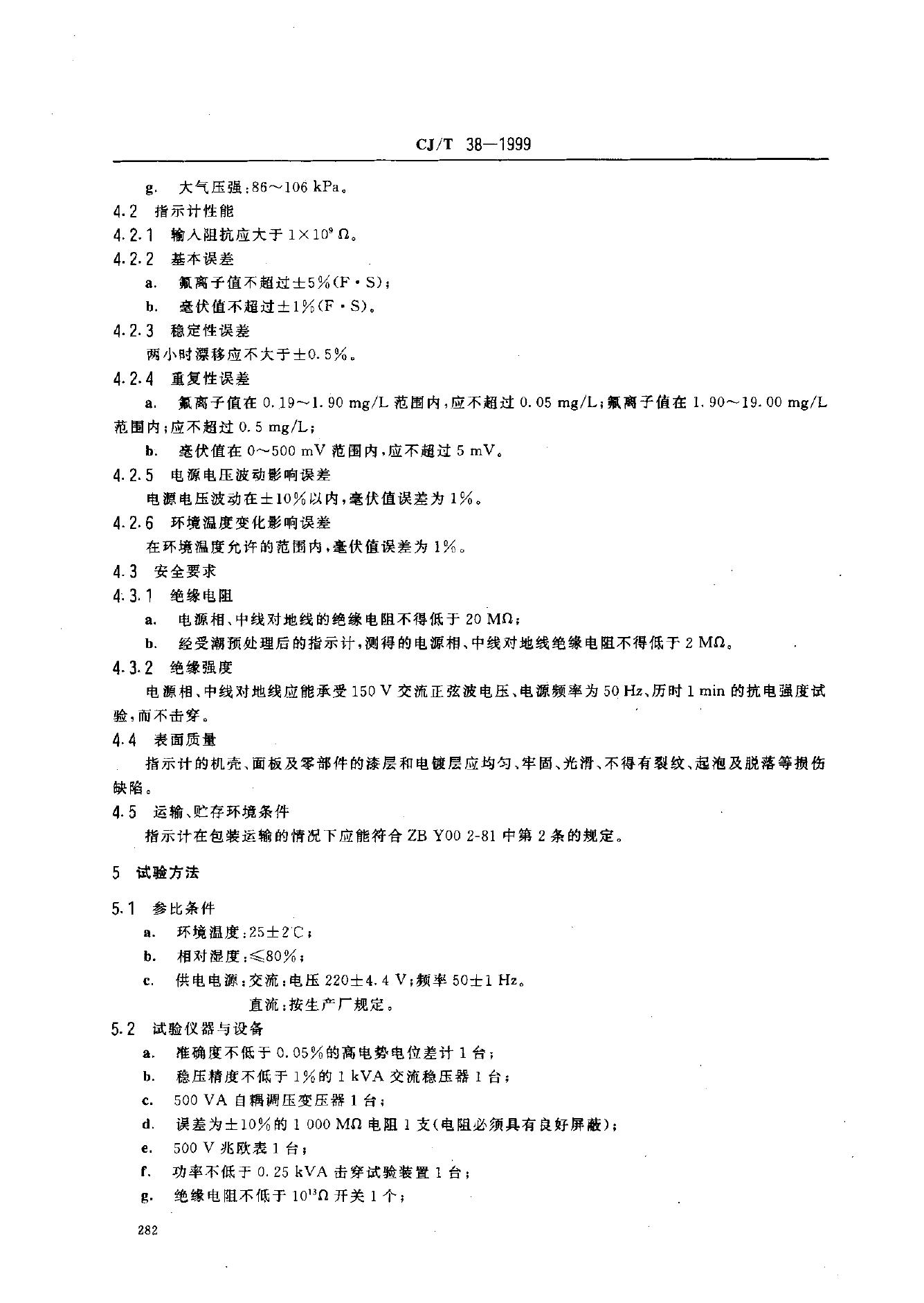 CJ/T 38-1999 测氟仪指示计
