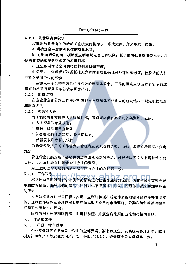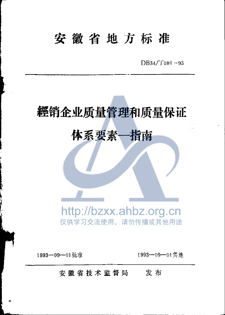 DB34/T 080-1993 经销企业质量管理和质量保证体系要素--指南