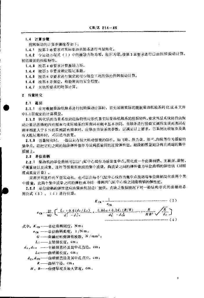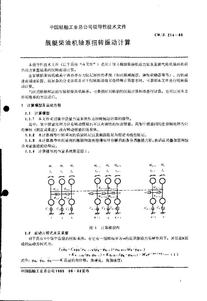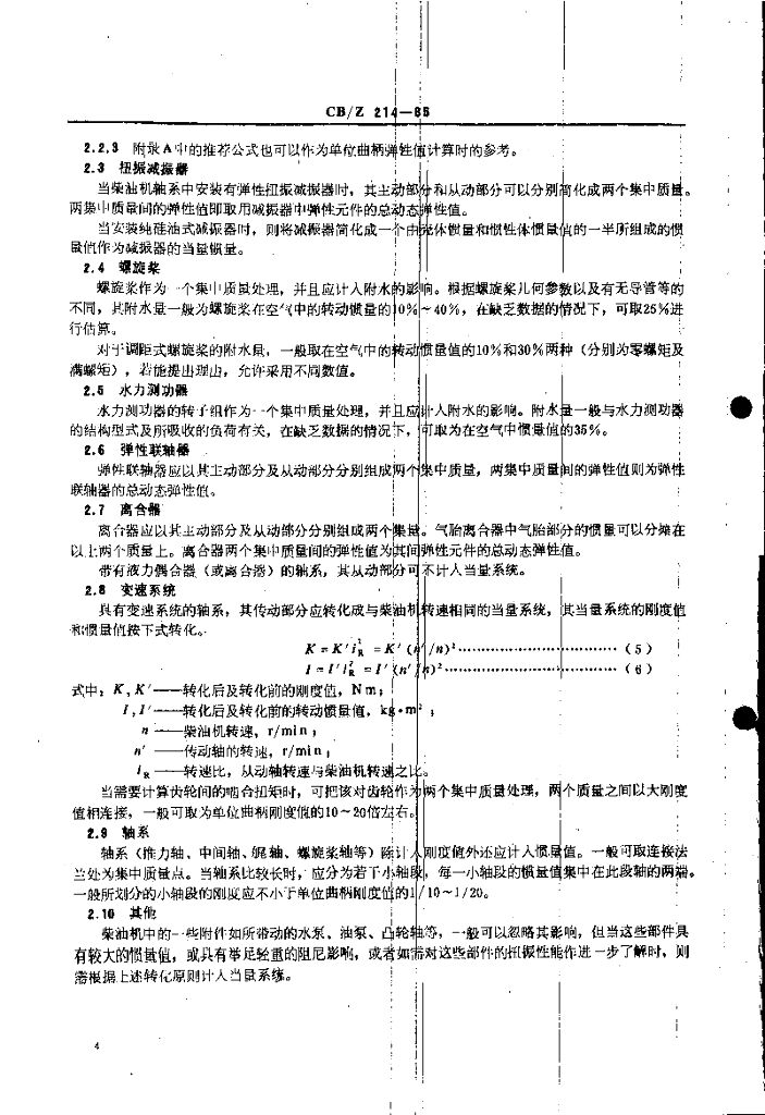 CB/Z 214-1985 舰艇柴油机轴系扭转振动计算