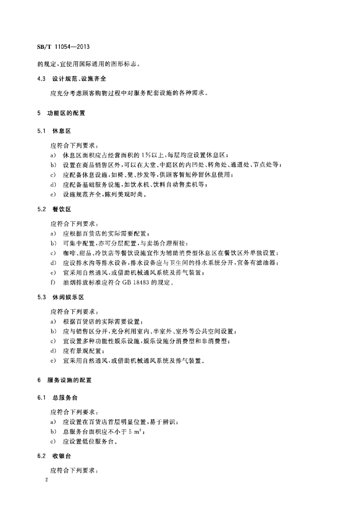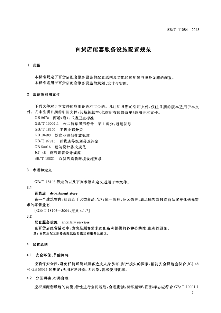 SB/T 11054-2013 百货店配套服务设施配置规范