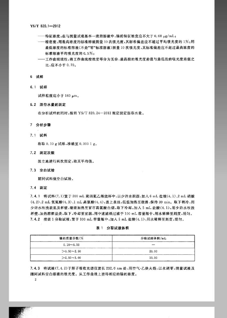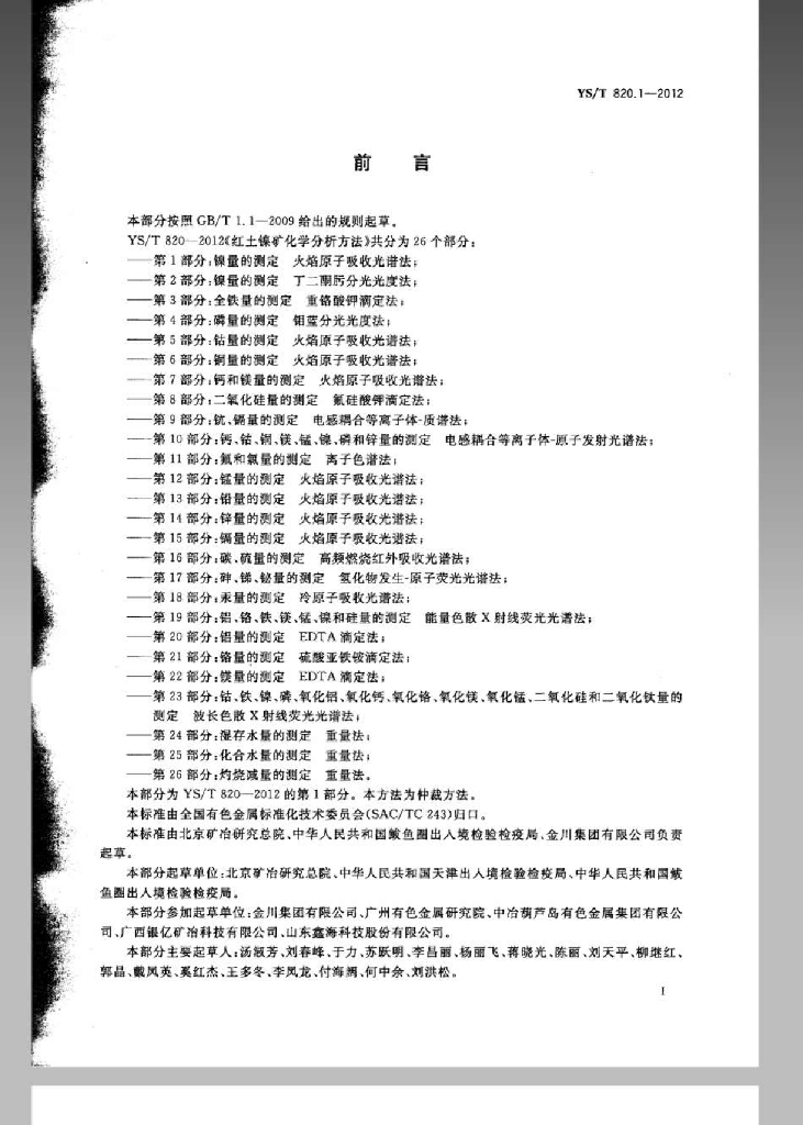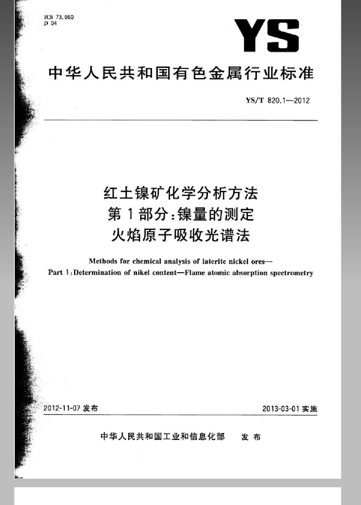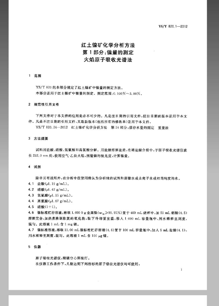 YS/T 820.1-2012 红土镍矿化学分析方法 第1部分:镍量的测定 火焰原子吸收光谱法