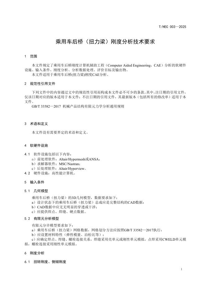 T/HEC 003-2025 乘用车后桥(扭力梁)刚度分析技术要求