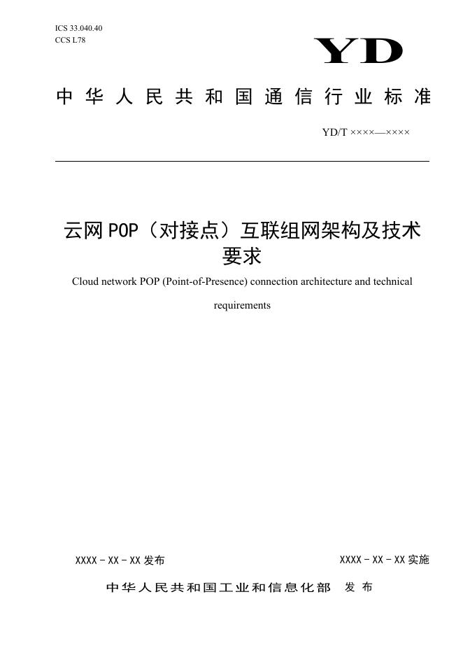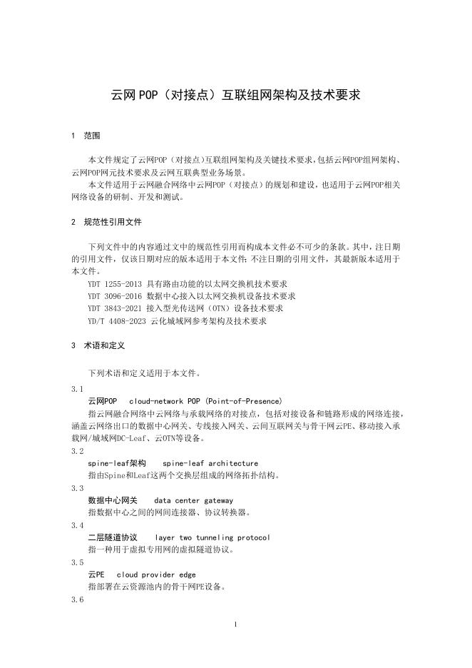 YD/T 6084-2024 云网POP(对接点)互联组网架构及技术要求
