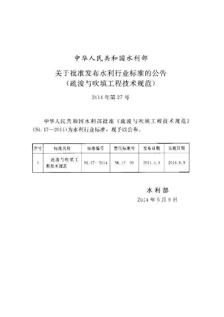 SL 17-2014 疏浚与吹填工程技术规范