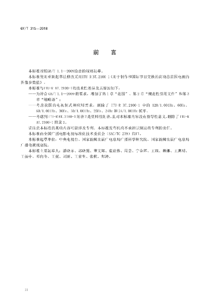 GY/T 315-2018 高动态范围电视节目制作和交换图像参数值