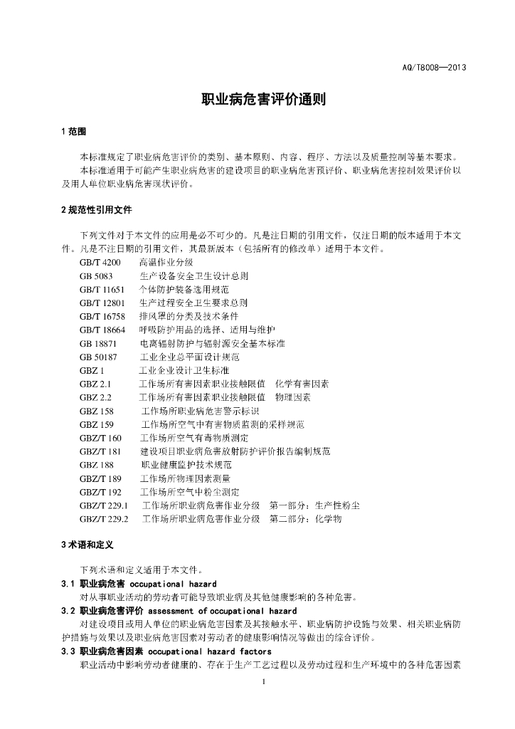 AQ/T 8008-2013 职业病危害评价通则