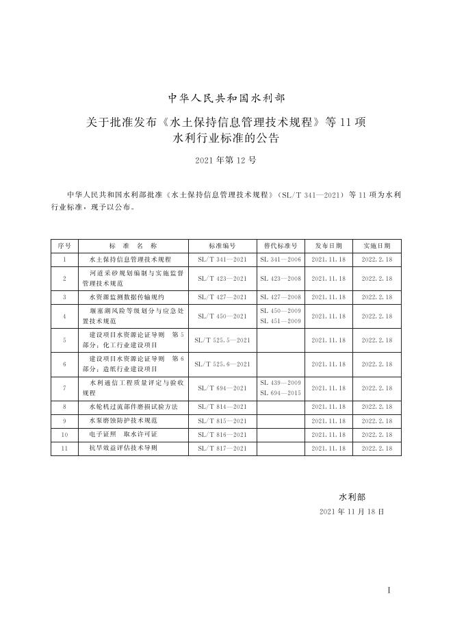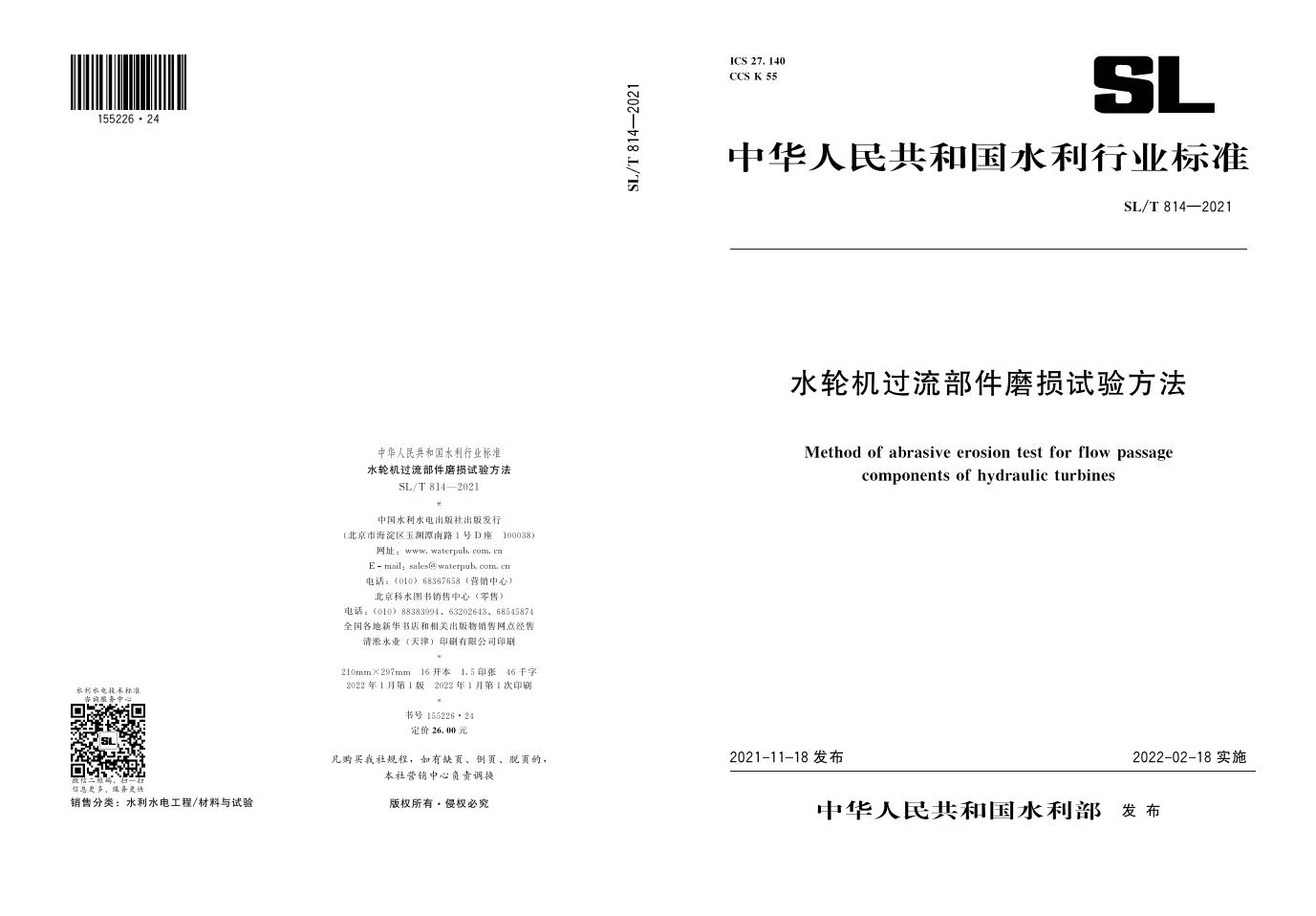 SL/T 814-2021 水轮机过流部件磨损试验方法