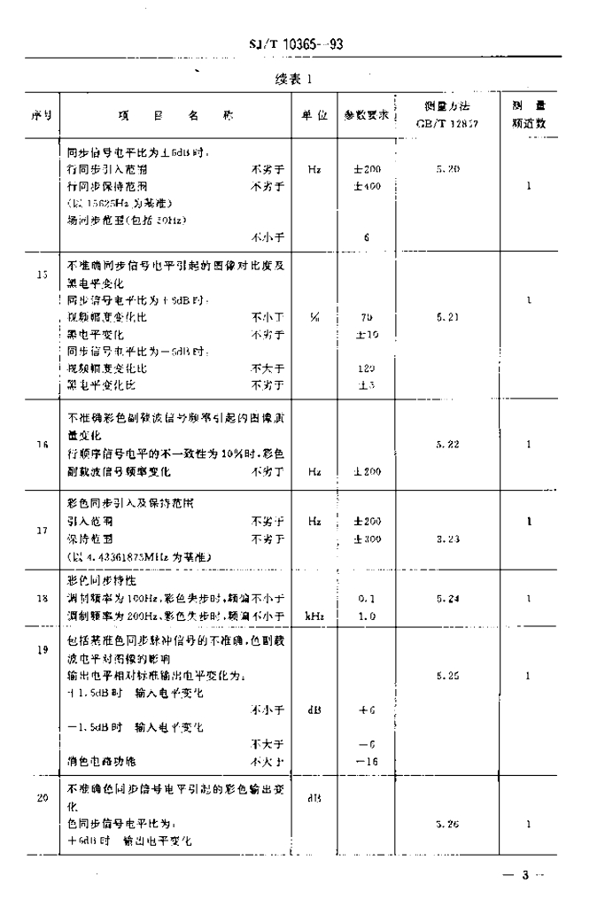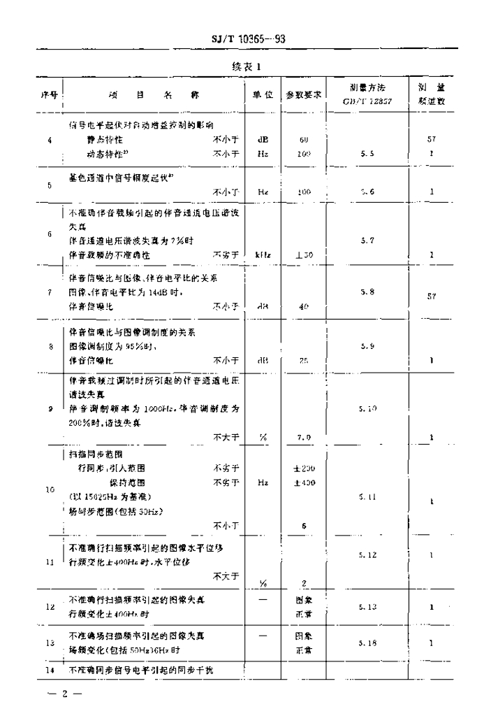 SJ/T 10365-1993 电视广播接收机在非标准广播信号条件下的基本参数和技术要求